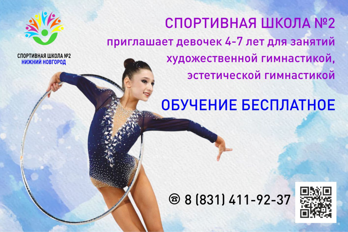 Муниципальное бюджетное образовательное учреждение дополнительного образования «Спортивная школа № 2» Департамента физической культуры и спорта администрации города Нижнего Новгорода реализует программы физкультурно-спортивной направленности и осуществляет подготовку спортсменов по трем направлениям: художественная гимнастика, прыжки на батуте (двойной минитрамп), эстетическая гимнастика.